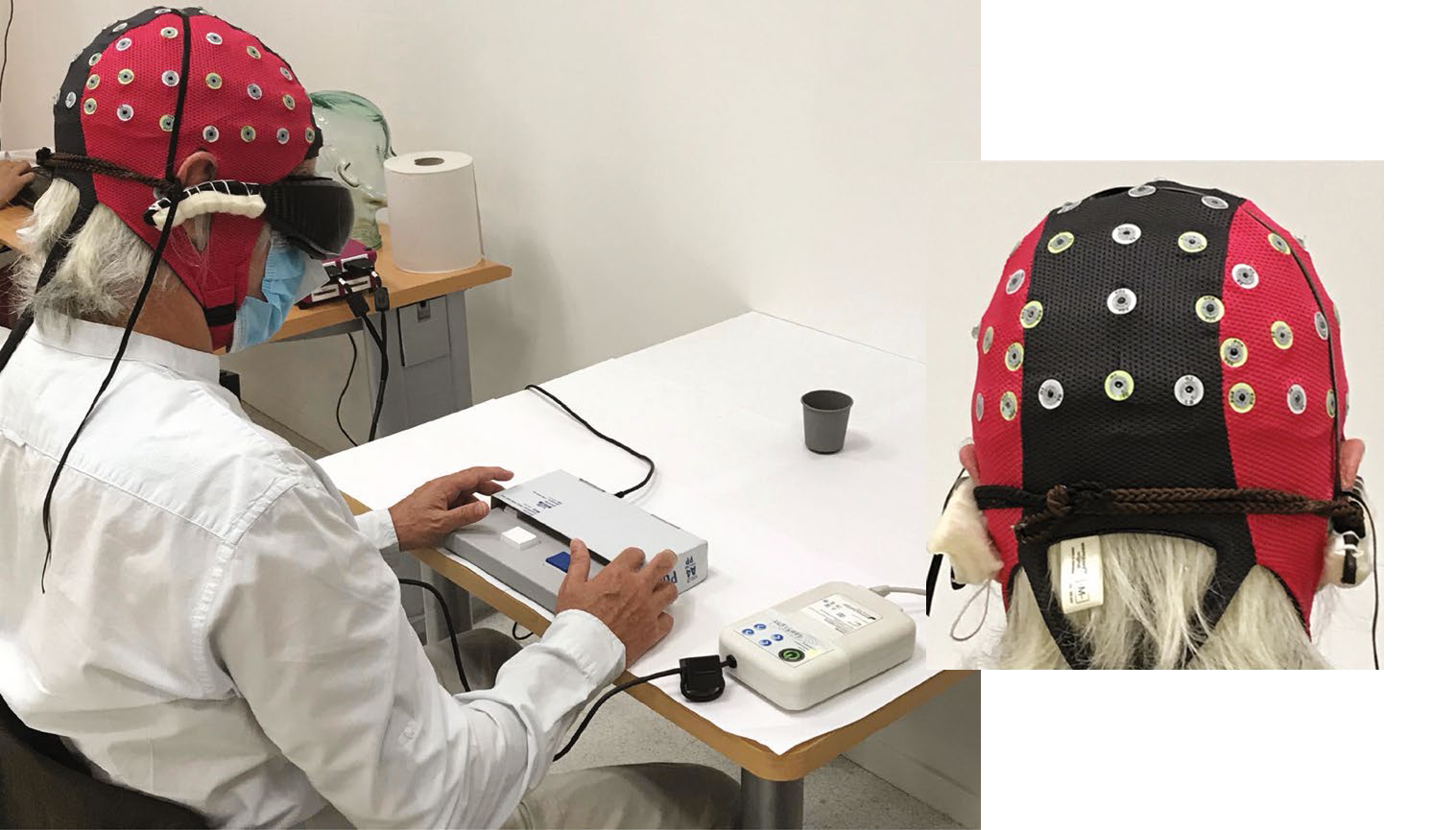 Seven months after training began using the goggles, the patient reported improvements in vision. During tests he was able to identify a notebook (92% of the time) and a pencil case (36% of the time) on a table in front of him. He also correctly counted the number of tumblers on the table (63% of the time). Without the aid of his goggles, the patient successfully completed these tasks zero percent of the time.
